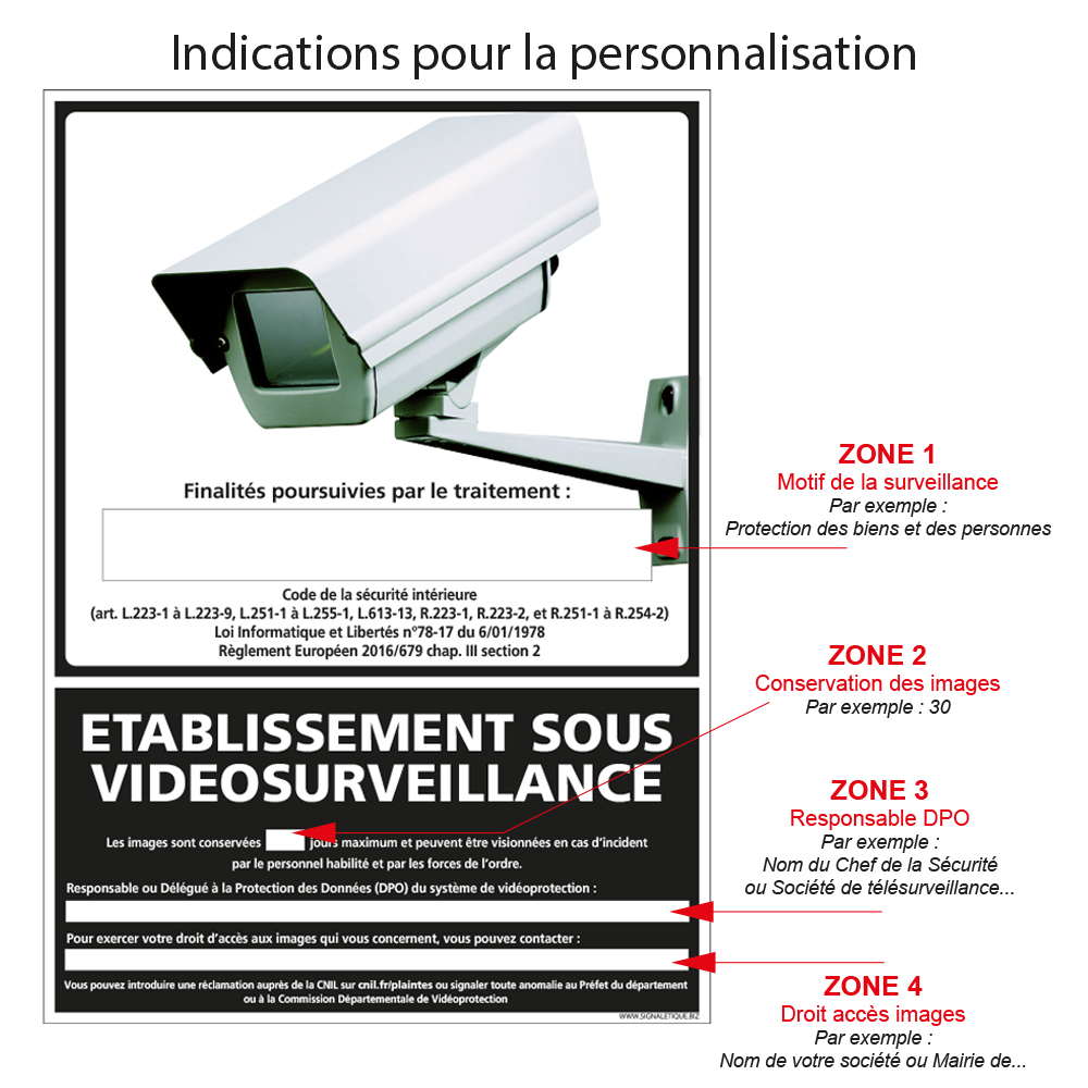 Panneau de signalisation pour les établissements sous vidéosurveillance.
